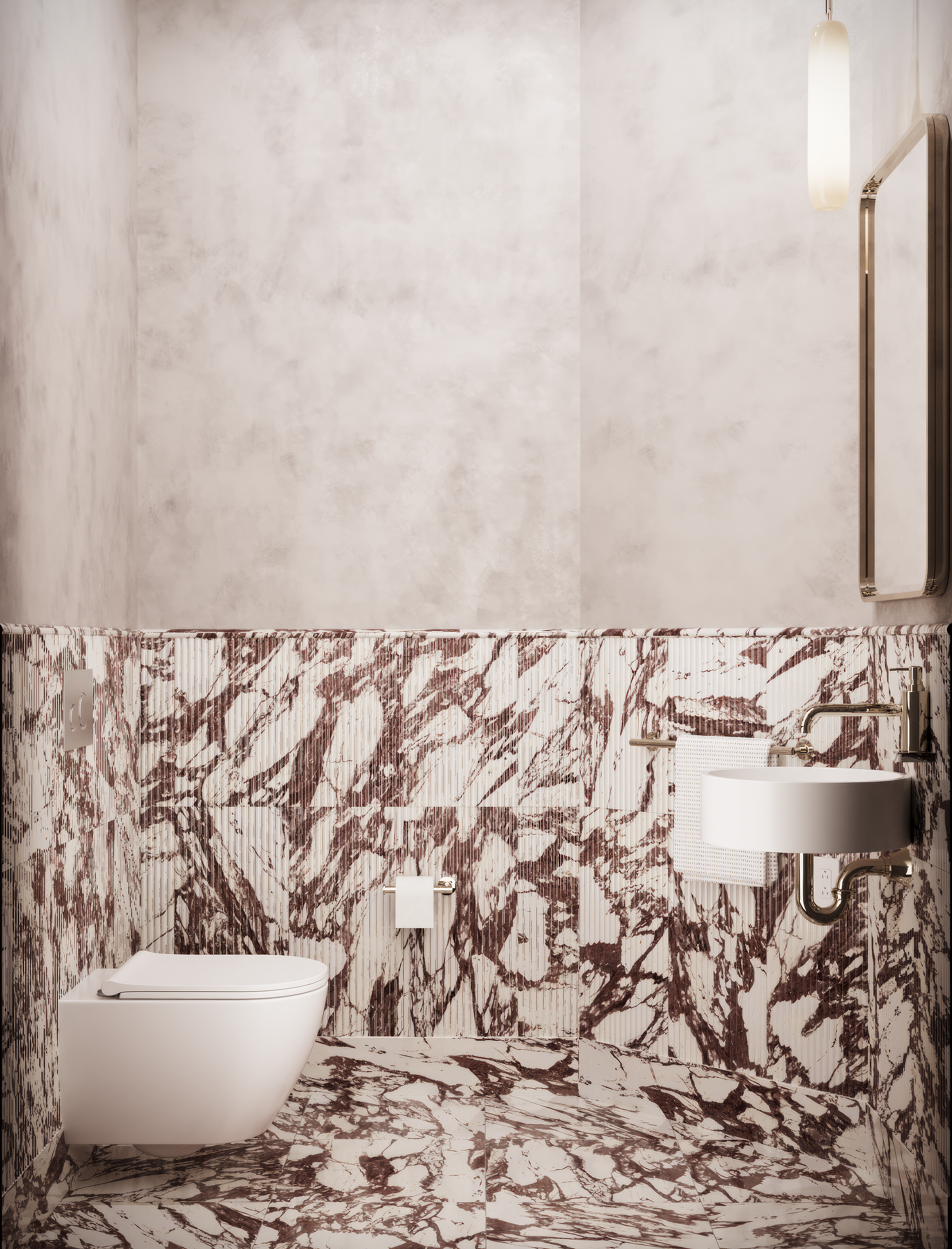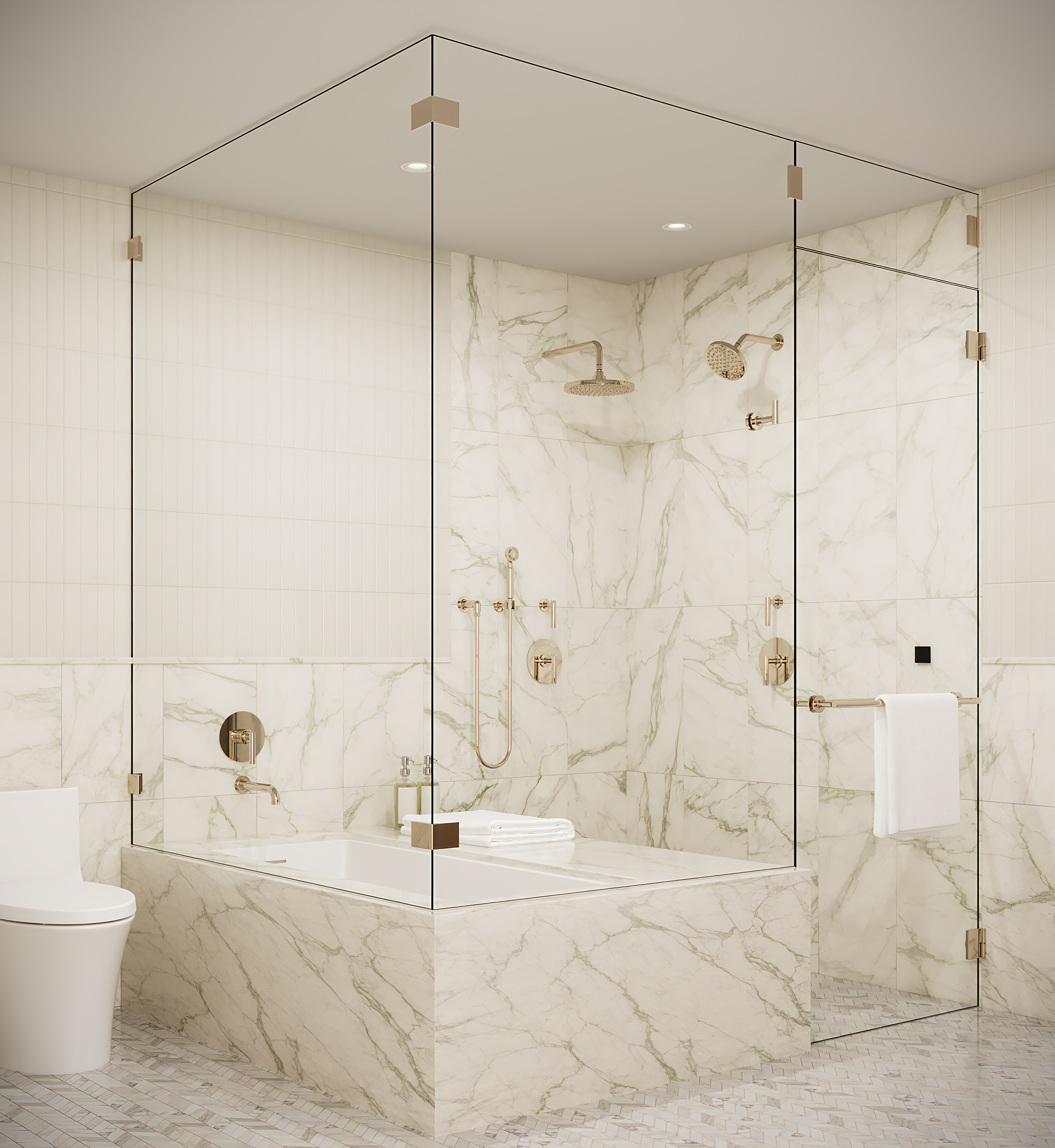 Complete renovation of two primary en suites, two full baths and two powder rooms in one expansive Tribeca duplex. Each bathroom is unique and features luxury fixtures and finishes.